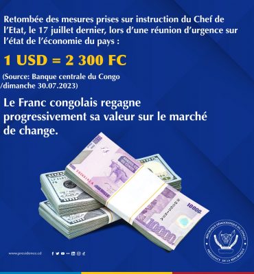 RDC : Appréciation progressive de Franc Congolais par rapport aux Dollars Américains, la banque centrale applique les instructions du Chef de l'Etat Après les différentes ...